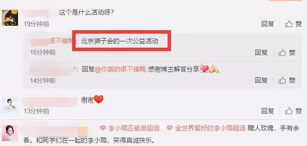 从评论区可以看到,这位爆料者说:“北京狮子会的一次公益活动”,李小璐粉丝团也第一时间转发了该条动态,还大赞李小璐:“赠人玫瑰,手有余香,和同学们在一起的李小璐,笑得真诚快乐”,你还喜欢李小璐这个演员吗?