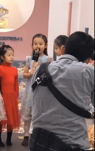 如今7岁的甜馨可以说长势喜人,生日会上拿着话筒和好友一起唱歌的她,举止大方优雅,个头明显比两旁好友高很多。