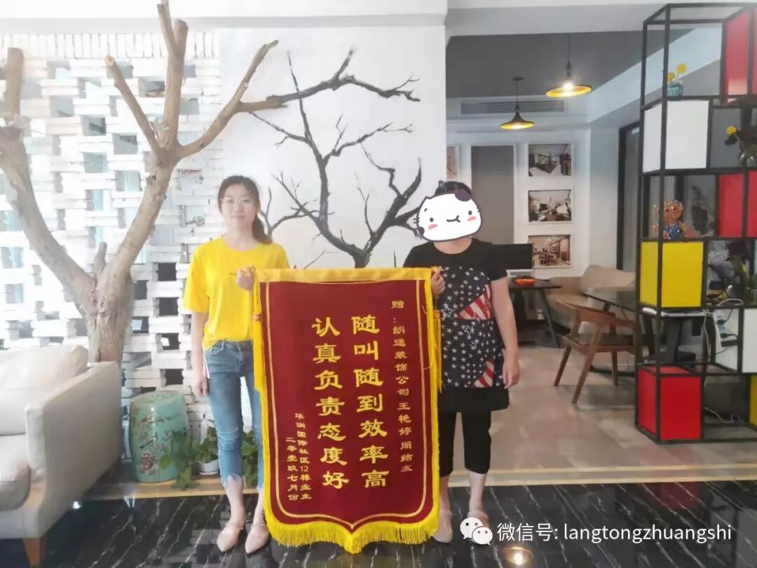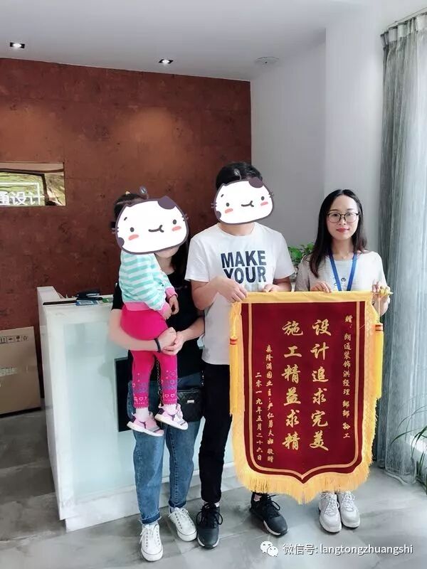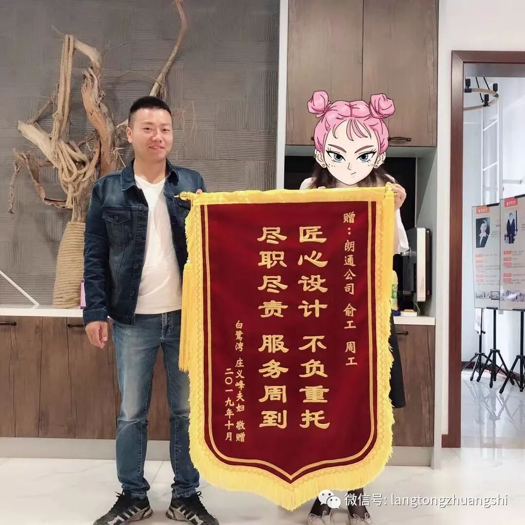 黄金海岸小区罗先生把一面印有“设计新颖 工艺精湛 服务周到 客户满意”的锦旗送到朗通装饰,他说:”在装修这段期间设计师的服务非常周到,沟通也很愉快,选择朗通很满意! 朗通在沟通、设计、施工、配套服务等各方面秉着“客户满意度高于一切”的原则,用真诚与责任打造业主的爱家。感谢业主对朗通的信任,客户的肯定是我们前进路上的最大动力,我们会继续努力!