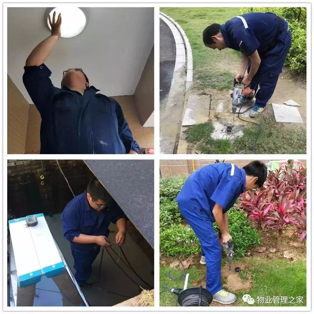 三、维修,维修的任务很重,是房产保值增值的关键,看维修不要看表面现象,给业主家干点私活就是好工人,那就错了,真正的好物业维修要去看他管辖的设备房,水箱房一尘不染,电梯机房设备整洁、运行平稳,屋面防水总是那么完好,维修的及时率、完好率等等,这才是对业主负责的物业。