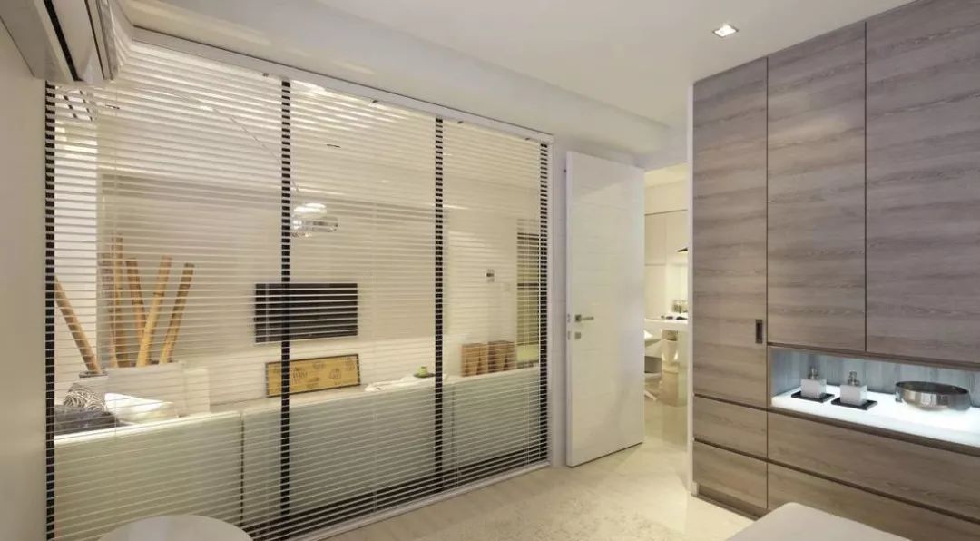 有些单身公寓,连卧室和客厅都是连在一起的,这时候也可以在客厅和卧室之间加一道玻璃隔断,保护隐私。