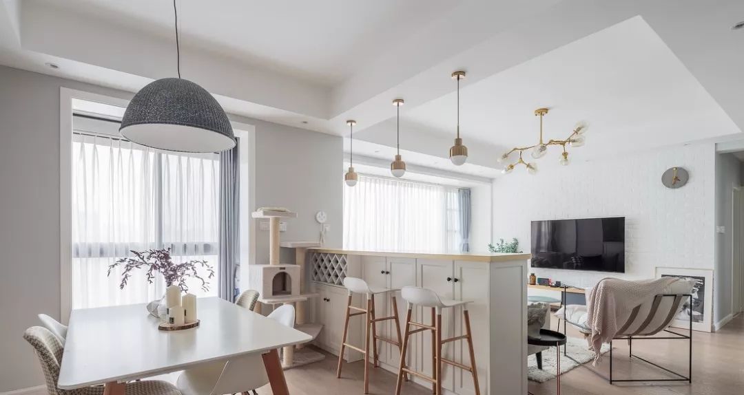 这时,在厨房和客厅之间加入一个吧台,让两者的划分更明显,而且吧台还能当备餐桌,一举两得。