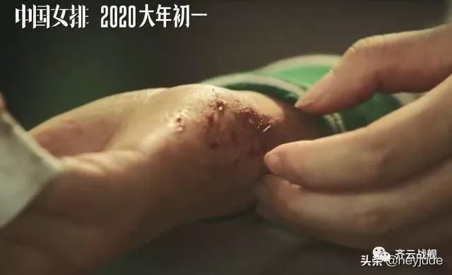 除了这张伤痕累累的电影海报,在电影《中国女排》首支预告片中,也有许多反映老女排姑娘们,在上世纪70、80年代刻苦训练的画面,像是手掌磨破皮流着血,依旧带伤训练的画面,也同样令人印象深刻。