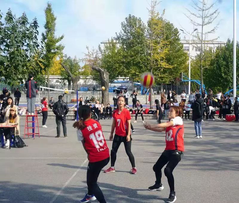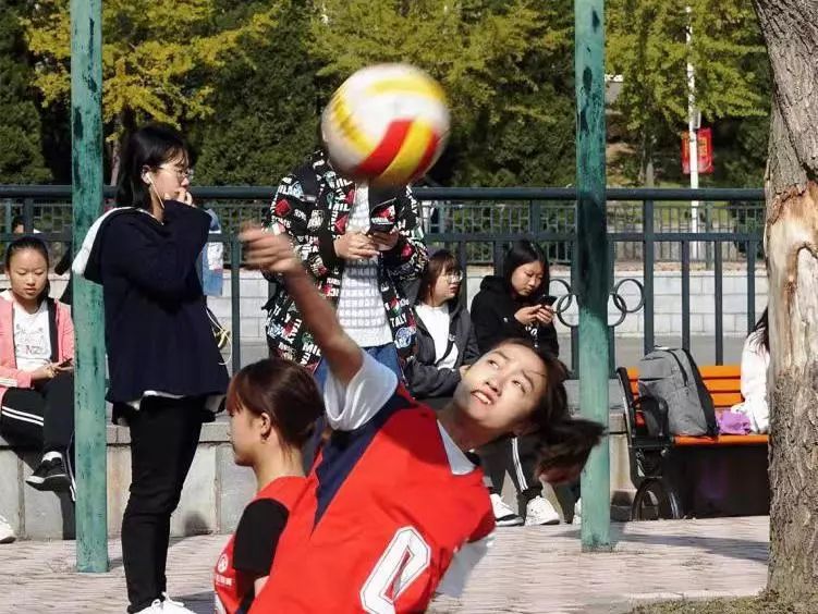 2019年10月26日12时25分,投资女排迎来了第二场比赛,对战公共管理学院。她们早早来到比赛场地,开始热身训练。此时的阳光映在她们脸上格外耀眼,她们的身影是排球场上最靓丽的一道风景线。
