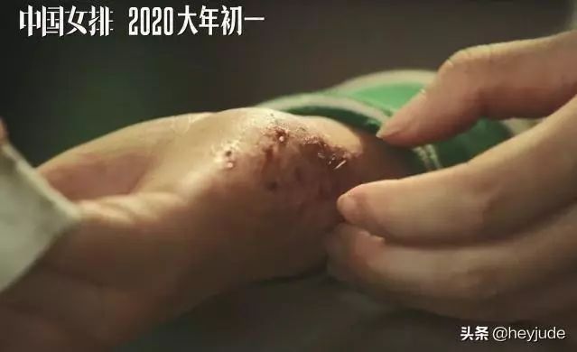 除了这张伤痕累累的电影海报,在电影《中国女排》首支预告片中,也有许多反映老女排姑娘们,在上世纪70、80年代刻苦训练的画面,像是手掌磨破皮流着血,依旧带伤训练的画面,也同样令人印象深刻。