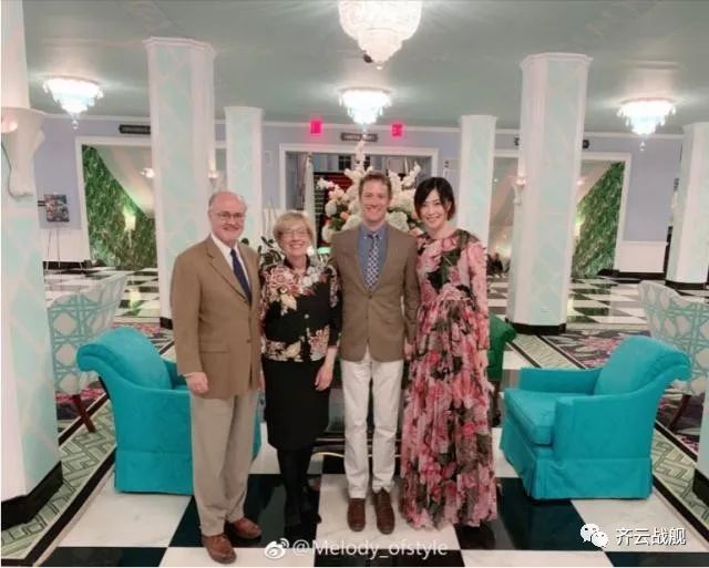 当时,雷特家把亲事办在了五星级豪华酒店绿蔷薇,马蕴雯和男友雷特、美国公婆一家四口幸福合影。