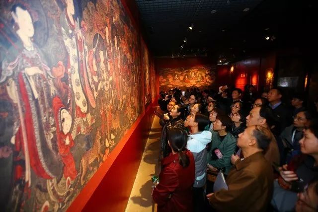 昨日,京津冀古代经典壁画艺术展在天津博物馆开幕。本次展览汇聚了北京法海寺、天津独乐寺、河北省毗卢寺三家寺庙所藏宗教题材的精美壁画,以壁画喷绘和高清复制的形式向观众展示。