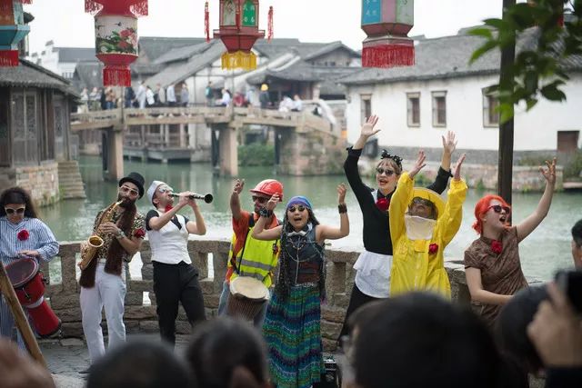 正在浙江桐乡乌镇举行的乌镇戏剧节上,每天180场的街头戏剧演出此起彼伏,将这座千年古镇变身为多彩的戏剧海洋。作为一年一度的国际戏剧盛会,第七届乌镇戏剧节自10月25日至11月3日在乌镇举行。