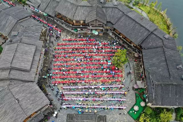 10月26日,贵州省黔东南苗族侗族自治州丹寨县迎来苗族传统节日“吃新节”,游客与苗族同胞在万达小镇参加“万人长桌宴”,欢度节日,庆祝丰收。