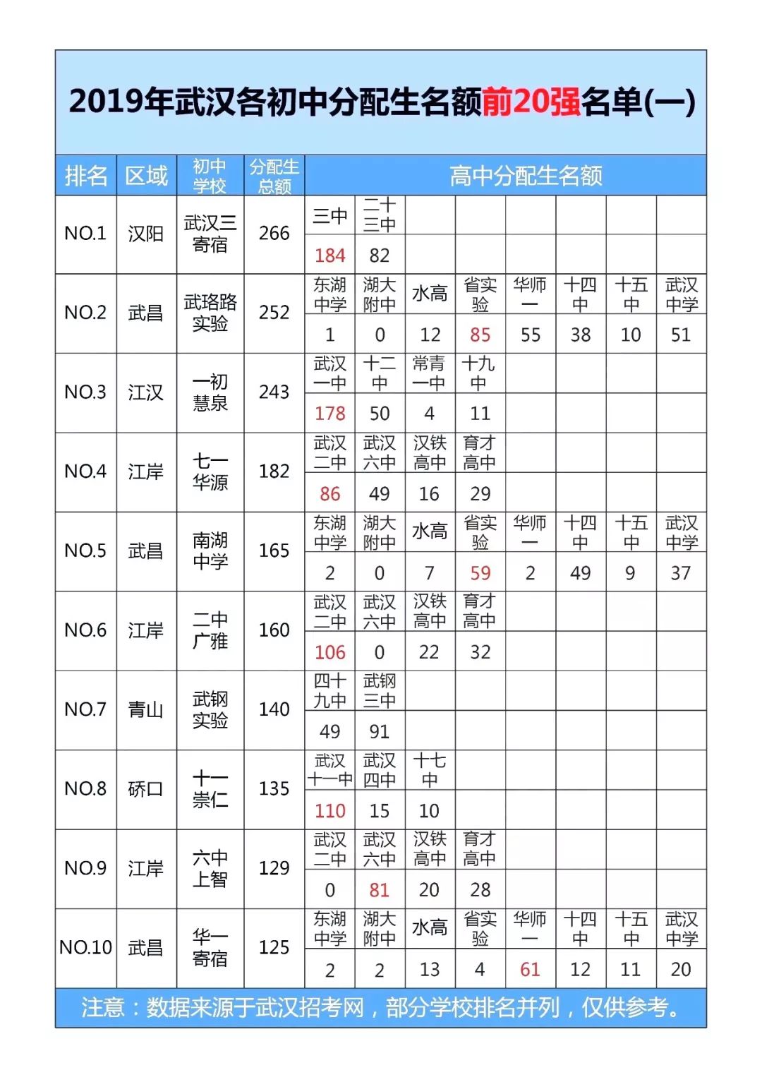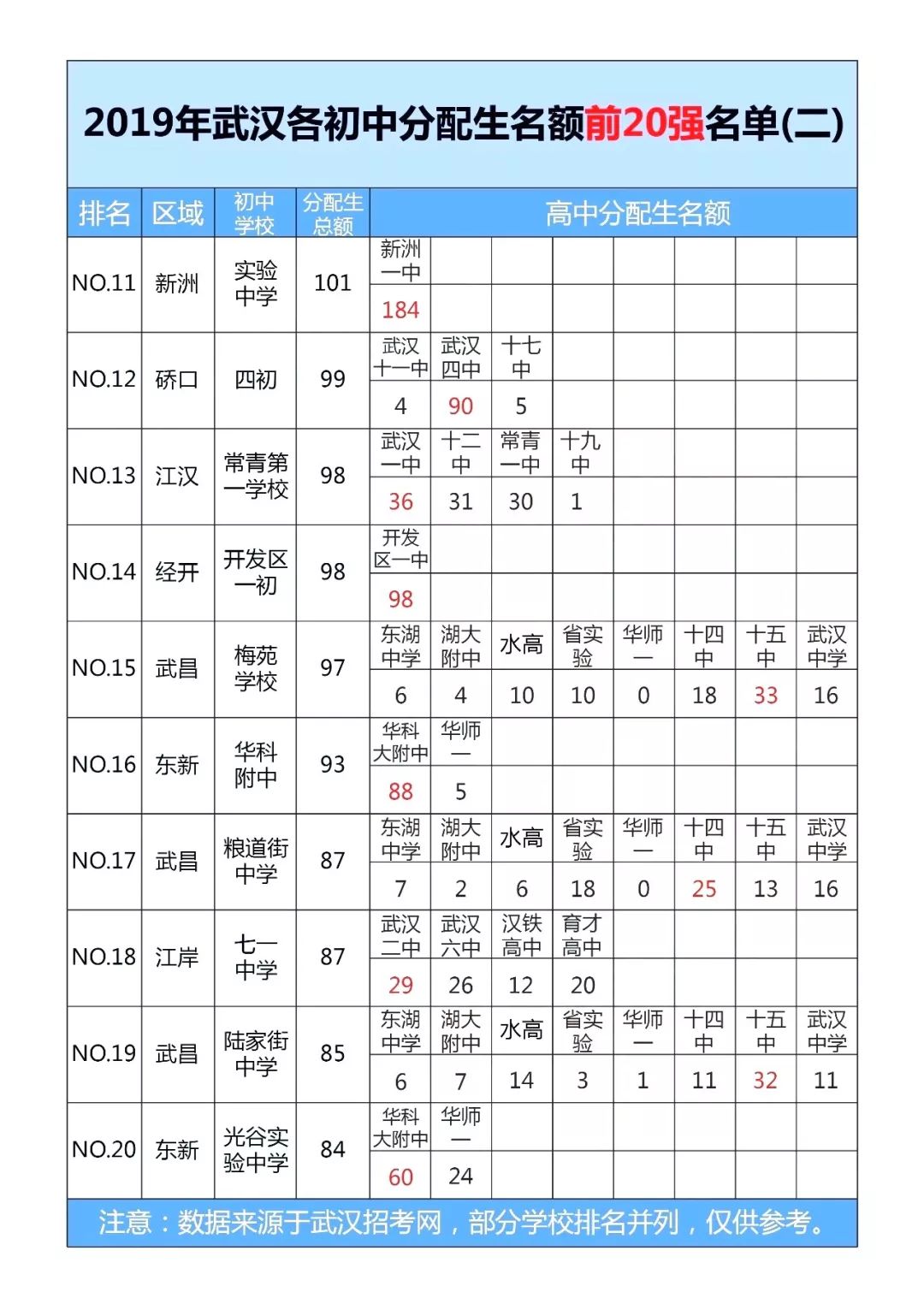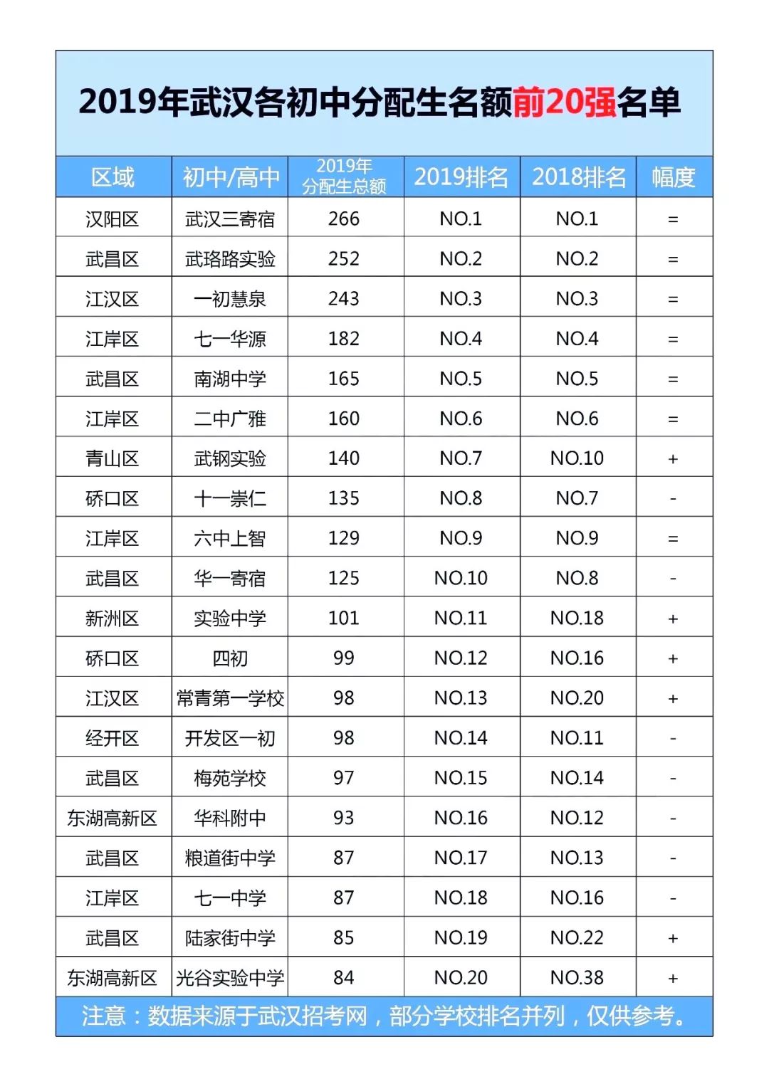 那么,放眼武汉三镇,哪些初中的分配生名额最多呢?下面,我们就一起来揭晓2019年武汉市分配生名额前20强初中!