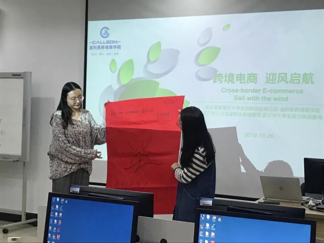 武汉工商学院蒋彩娜老师宣布迦利恩跨境电商培训正式开班