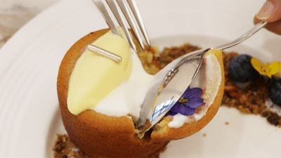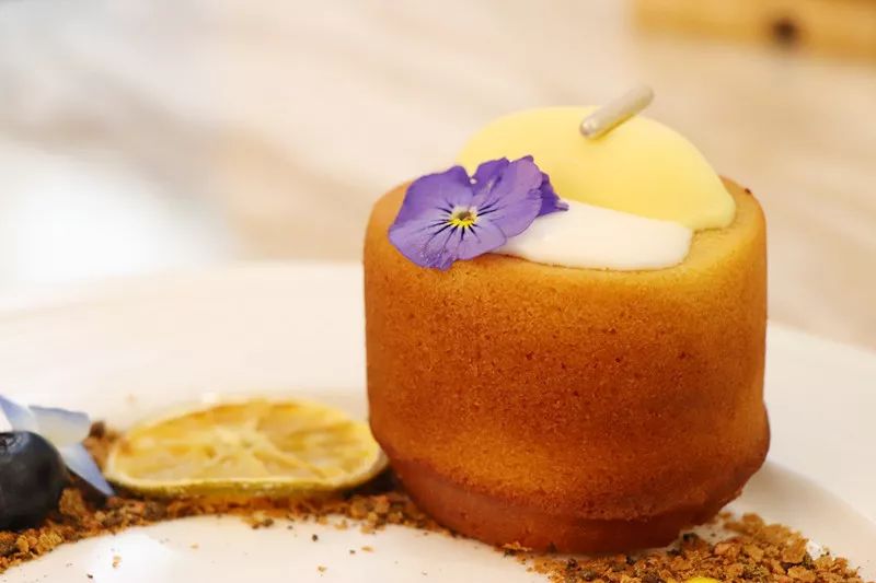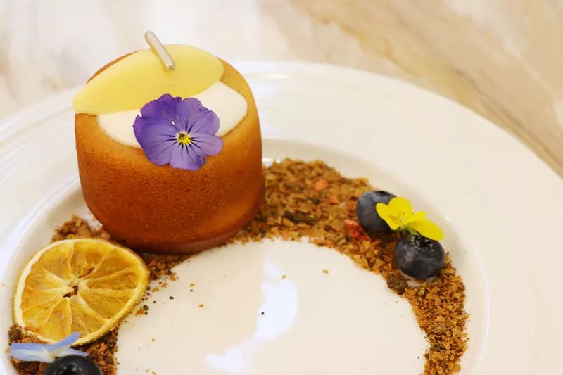 一份费南雪上桌,精致无比的摆盘真的让人觉得仪式感十足,这是一道传统的法式甜品,但在OLLiOLLi的改良下,变得更加精致可爱。
