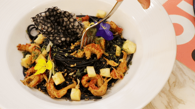 辣卤小龙虾墨鱼汁面