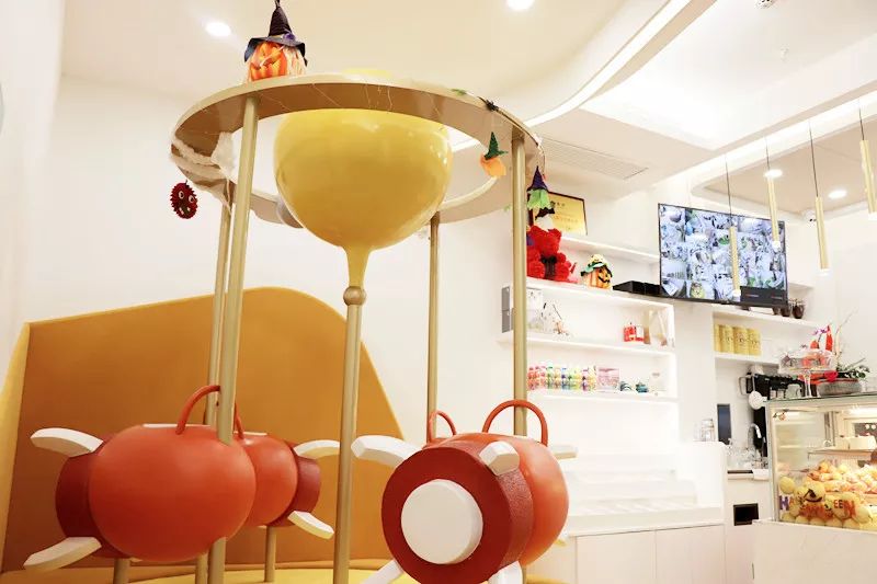 纯白与原木色相配,暖色的灯光让整个空间都柔和了下来,店内随处可见色彩斑斓的梦幻外星生物,仿佛一步踩进了星际童话的异次元世界。