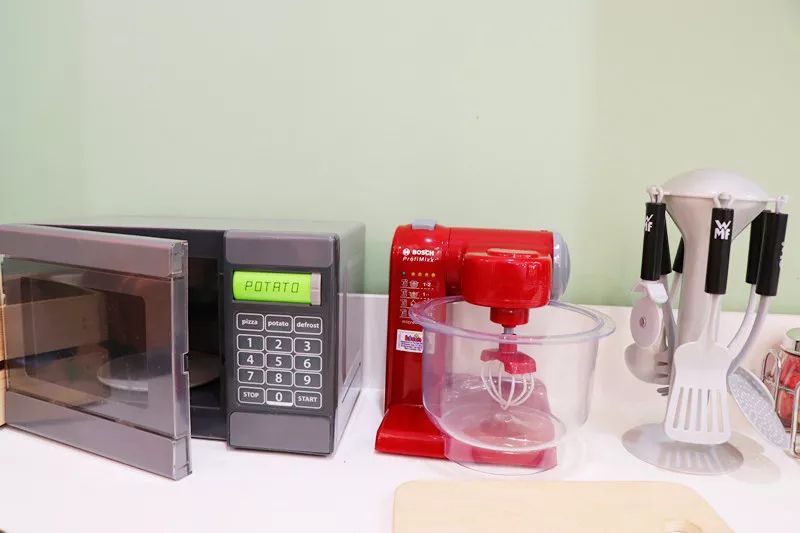 小厨房里的各种用具也都是可以使用,可玩性高安全系数也是满分,在这里小朋友即可扮演顾客,也可以扮演小厨师或者收银员,与小伙伴一起协作,社交能力和协作能力也更够得到锻炼。