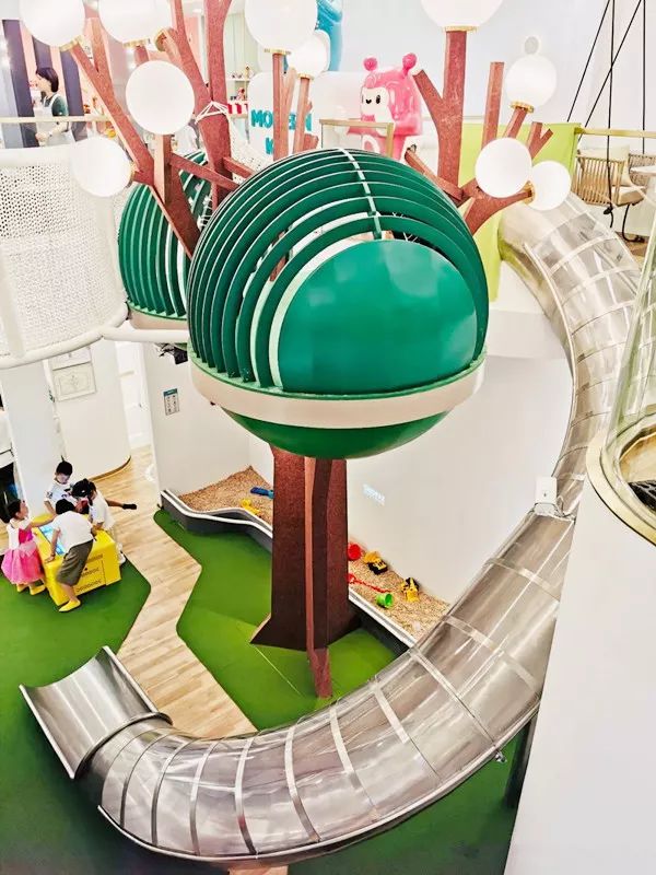 走进店内就能看到一个长达9米的巨型滑梯,贯穿餐厅的上下两层,超长的滑道安全措施却十分完善,即便是年龄不大的宝宝也可以放心体验。