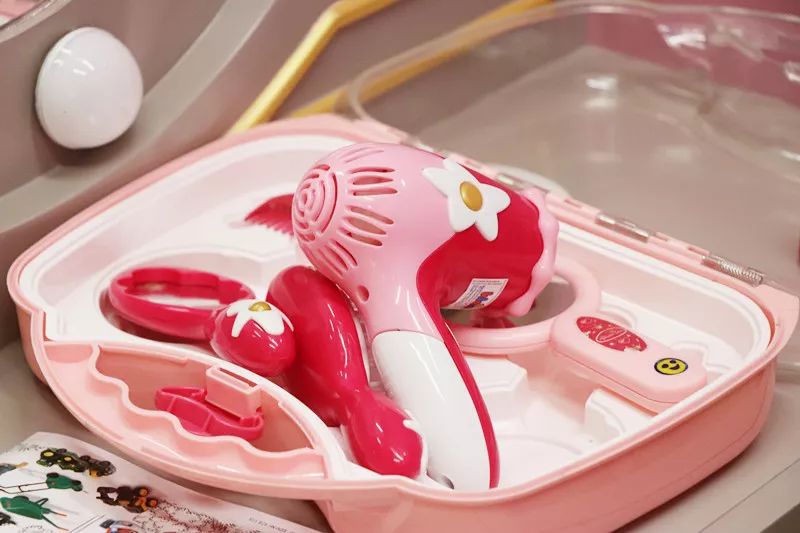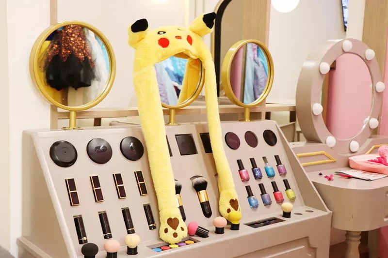 化妆台也是完全真实犹如商场柜台,这个区域的全套设备都是来自德国品牌Theo klein,化妆镜、化妆刷、小口红、指甲油,一应俱全。