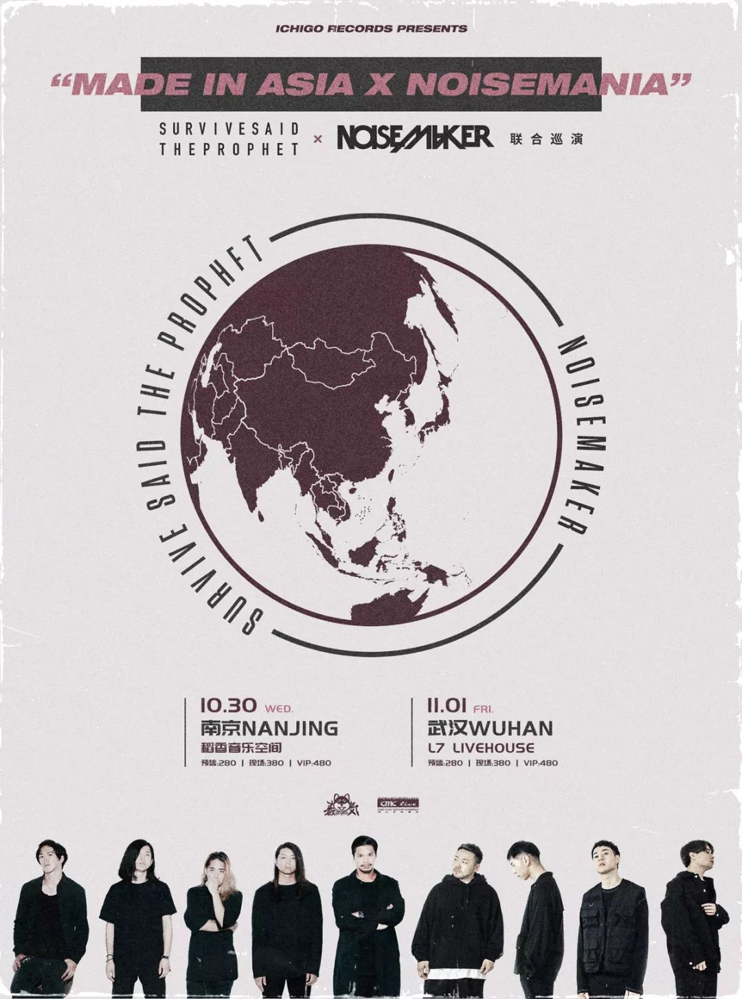 就在去年SurviveSaidTheProphet和NOISEMAKER分别在的9月和10月来华完成了他们的第一次中国巡演,经过一年时间的成长和蜕变,分别带着他们最新的作品,一起再次来到中国,强强联手为中国歌迷呈现这次南京、武汉双城联合巡演。