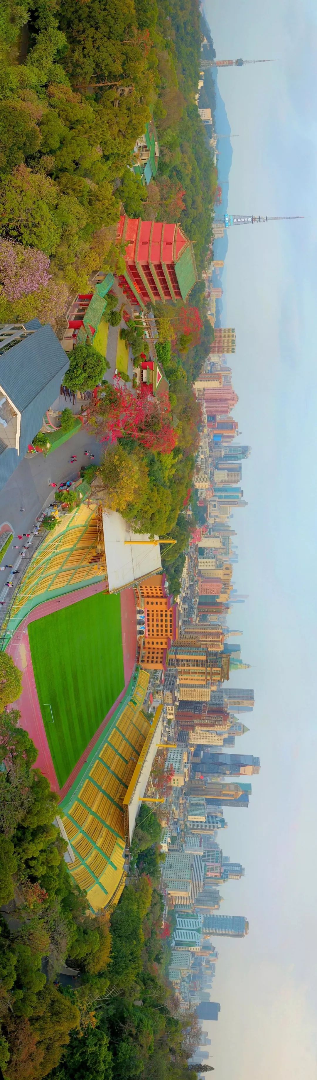 登至楼顶,凭栏远眺,花木葱荣的自然风光与群楼高耸的珠江新景无缝相接,羊城秀色尽收眼底。