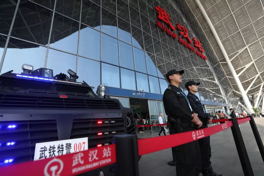特警支队护乘民警认真落实各项工作要求,确保列车安全运行。