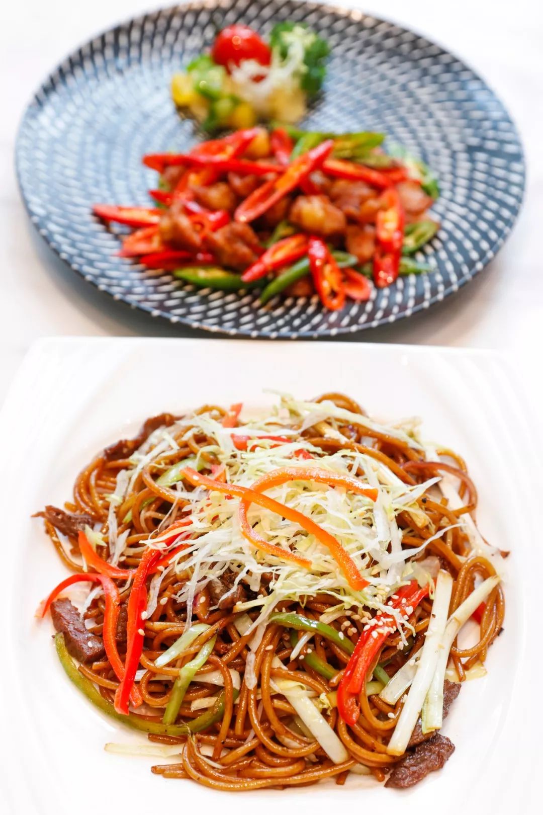 野菌牛肉粒炒饭、黑椒牛柳炒意粉