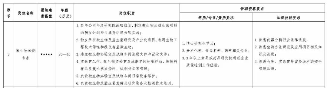 需求目录通过星号体现岗位的紧缺急需指数,星号越多,表明岗位越紧缺急需。从目录中可以看到,3星和4星岗位最多,分别为133个和86个,5星也就是最为紧缺急需的岗位有35个。