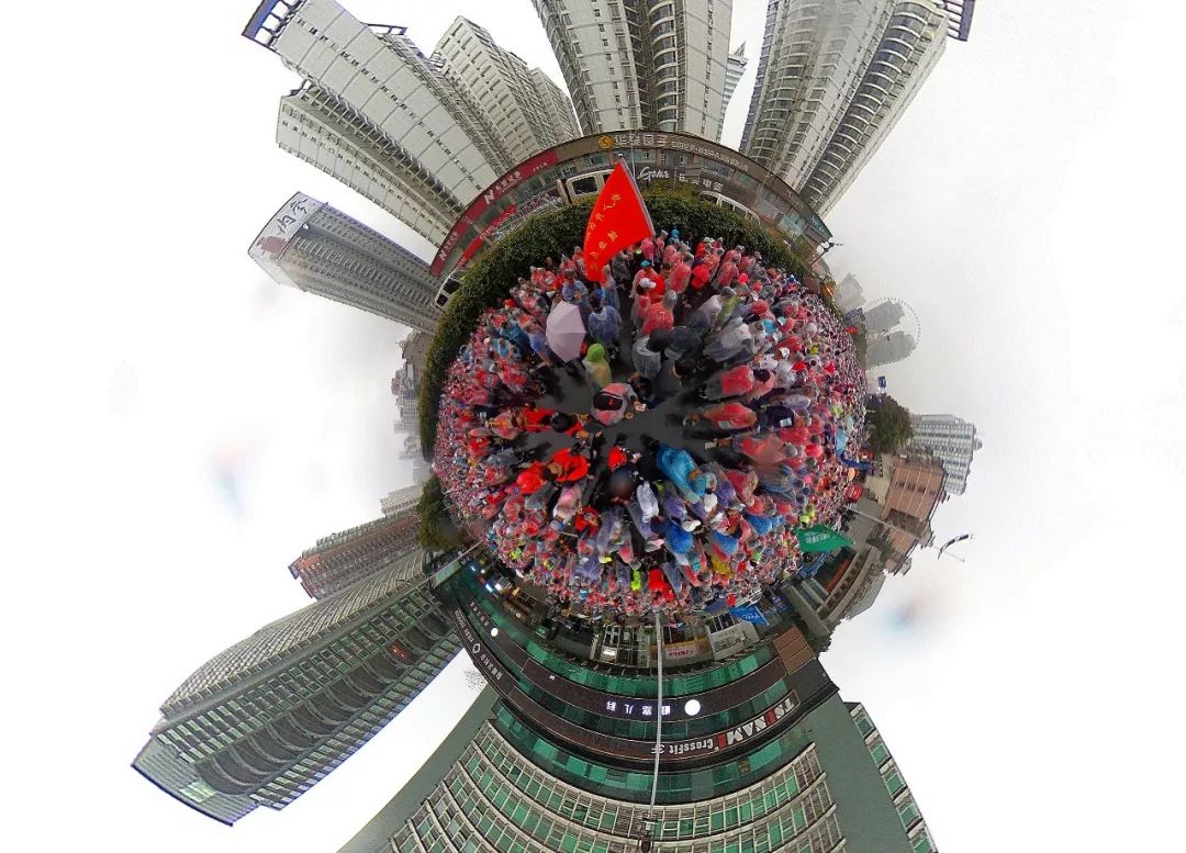 为了让大家切身参与长马我们的同事爱好跑步的“韧哥”成了特派记者头顶戴上了360全景摄像设备脑后别了GoPro运动相机手里还要举着云台