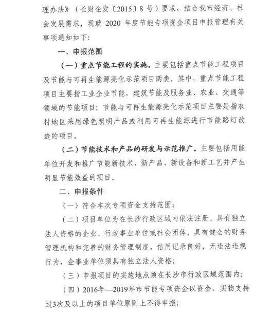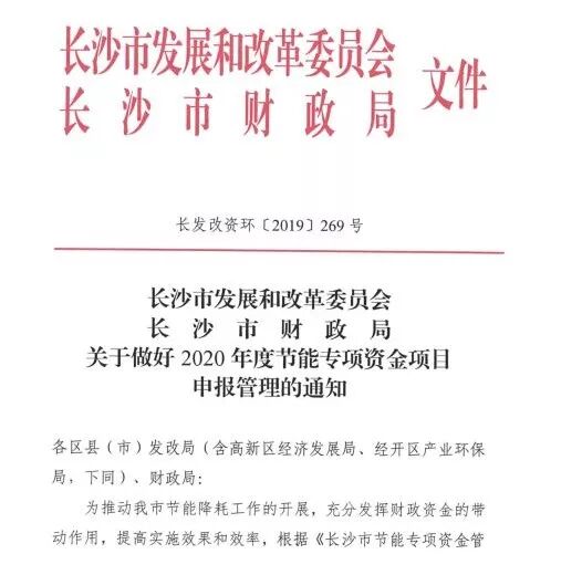 【资金申报】长沙市2020年度节能专项资金项目申报管理工作开始啦!