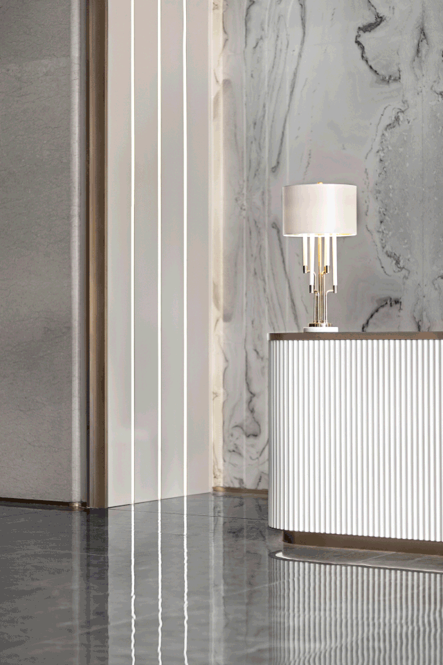 白净的折线与拱形的金属形成两种极致的对白与呼应,设计师以无穷的想象把无意识的行动转化为可见之物,将物体的轮廓用艺术语言再度改编,理性与感性的交叠与平行中,用设计为售楼中心全新赋能。