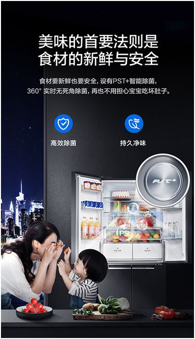 有机生活只是果净冰箱给消费者带来的惊喜之一,针对消费者,尤其是母婴人群日常保鲜中的健康忧虑,果净系列冰箱还搭载了银离子抑菌舱、PST+智能除菌两项技术,分别从抑制细菌滋生,防止食材污染和除灭细菌,去除异味两方面发力,深度保障消费者的食材安全,构筑起健康生活的护城河。