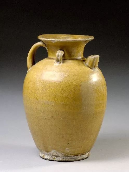 唐 婺州窑青釉双系瓜棱宝珠盖执壶