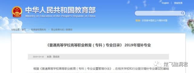就因此,近日,教育部下发《普通高等学校高等职业教育(专科)专业目录》,确定2019年增补专业共9个,自2020年起执行。