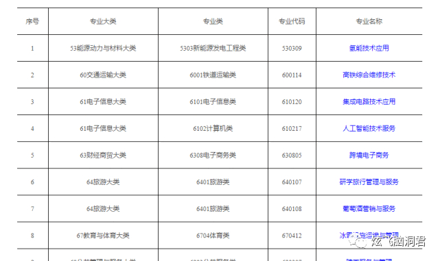 根据公告,增补专业共分为7个专业大类,8个专业类增补专业包括氢能技术应用、高铁综合维修技术、集成电路技术应用、人工智能技术服务、跨境电子商务、研学旅行管理与服务、葡萄酒营销与服务、冰雪设施运维与管理、陵园服务与管理。