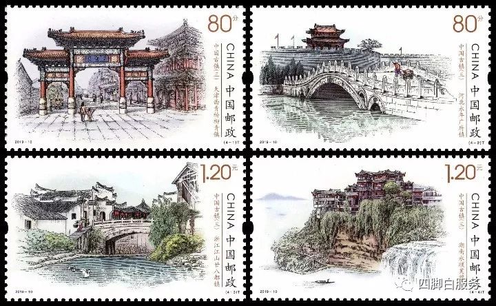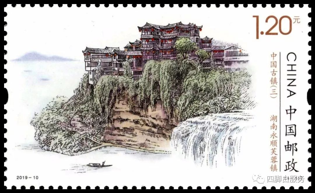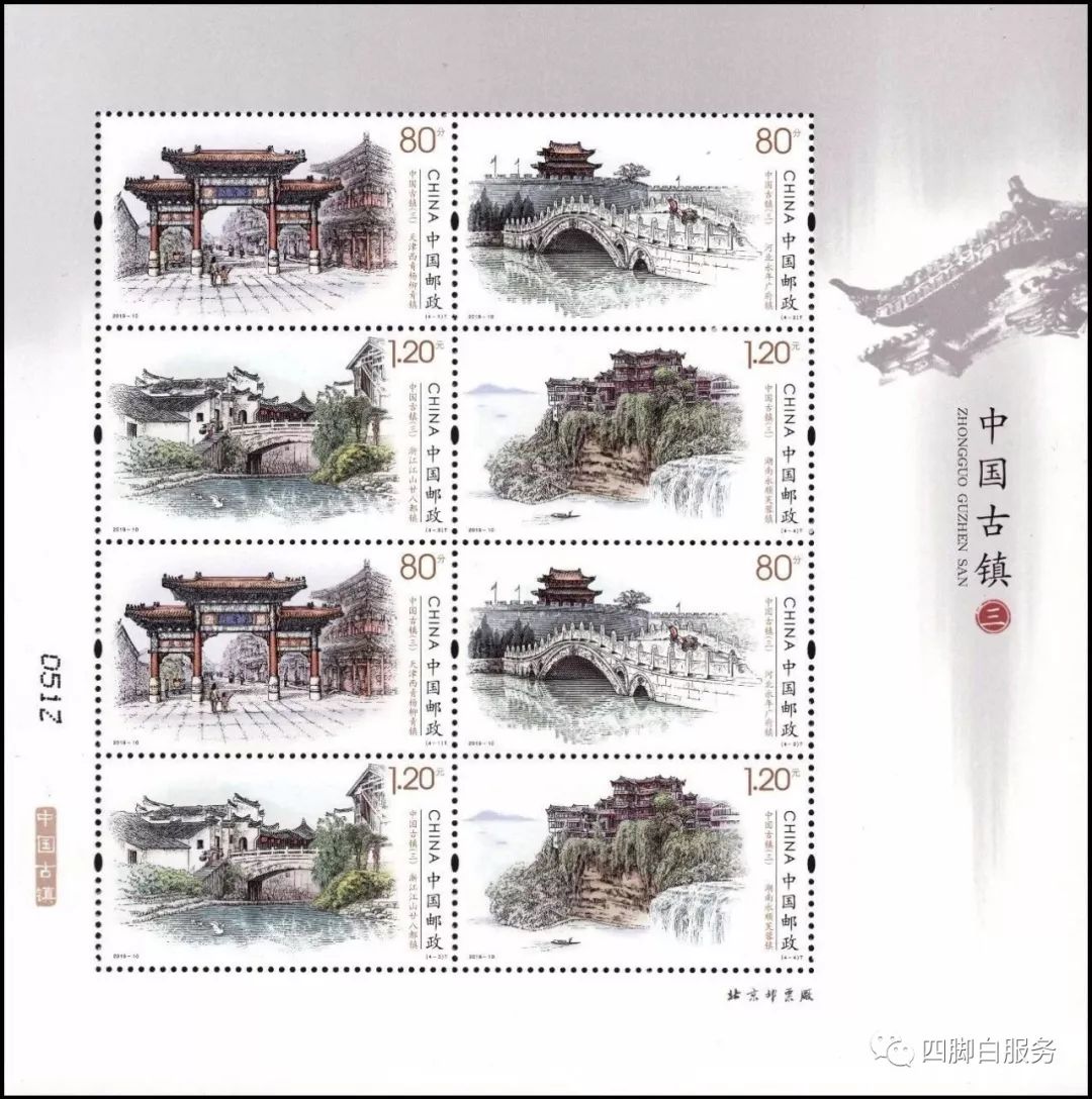 中国邮政定于2019年5月19日发行《中国古镇(三)》特种邮票1套4枚,全套邮票面值为4元。