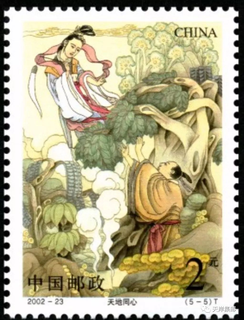 国家邮政局定于2002年10月26日发行《民间传说——董永与七仙女》特种邮票1套5枚。分别描绘了董永与七仙女孝心感天、下凡结缘、织锦赎身、满工回家、天地同心的故事。