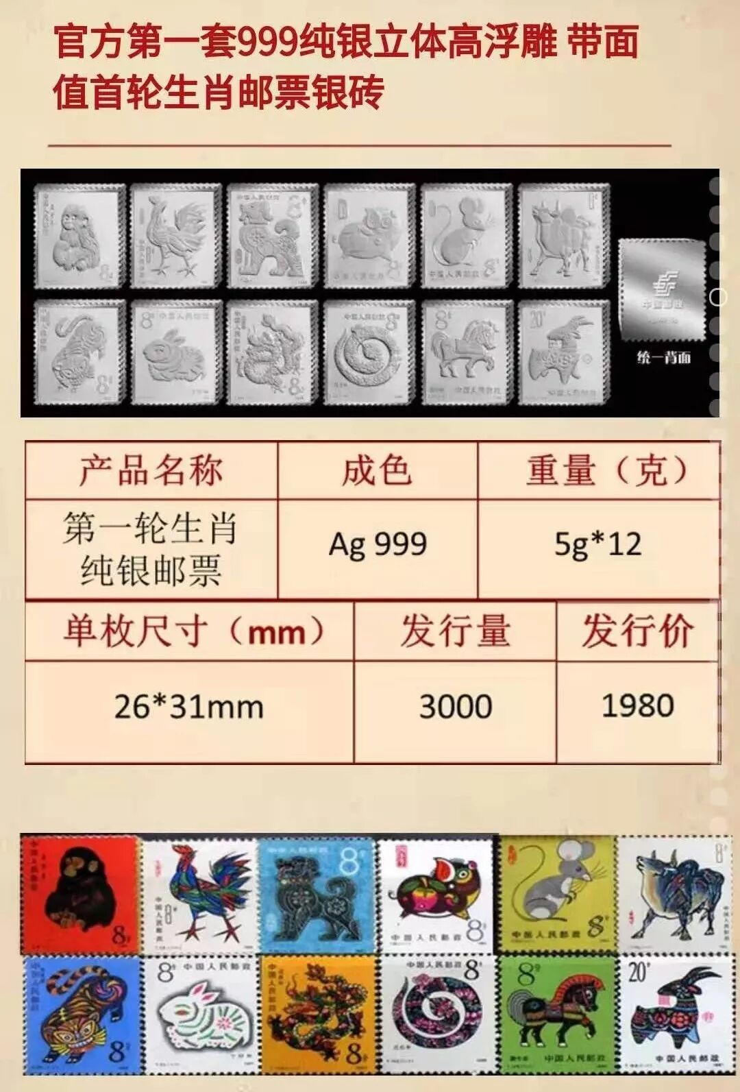 第一轮生肖邮票纯银珍藏版