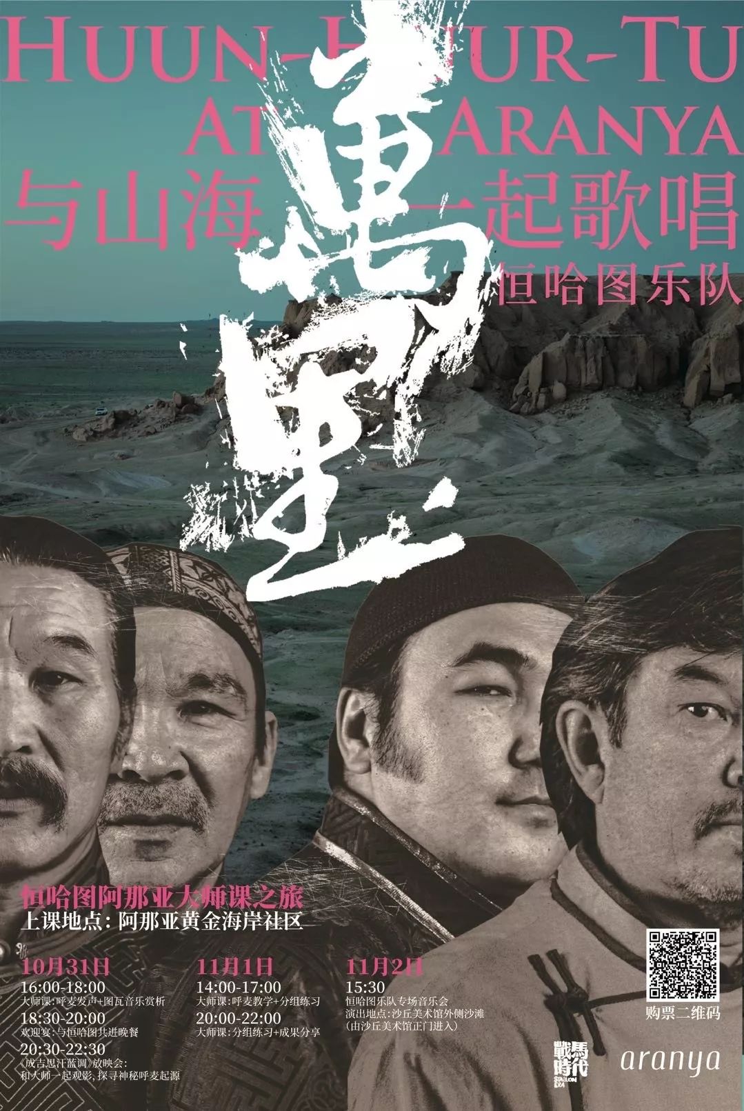 10月31日 —16:00-18:00 大师课呼麦发声+图瓦音乐赏析18:30-20:00 欢迎宴与恒哈图共进晚餐20:30-22:30《成吉思汗蓝调》放映会和大师一起观影,探寻神秘呼麦起源