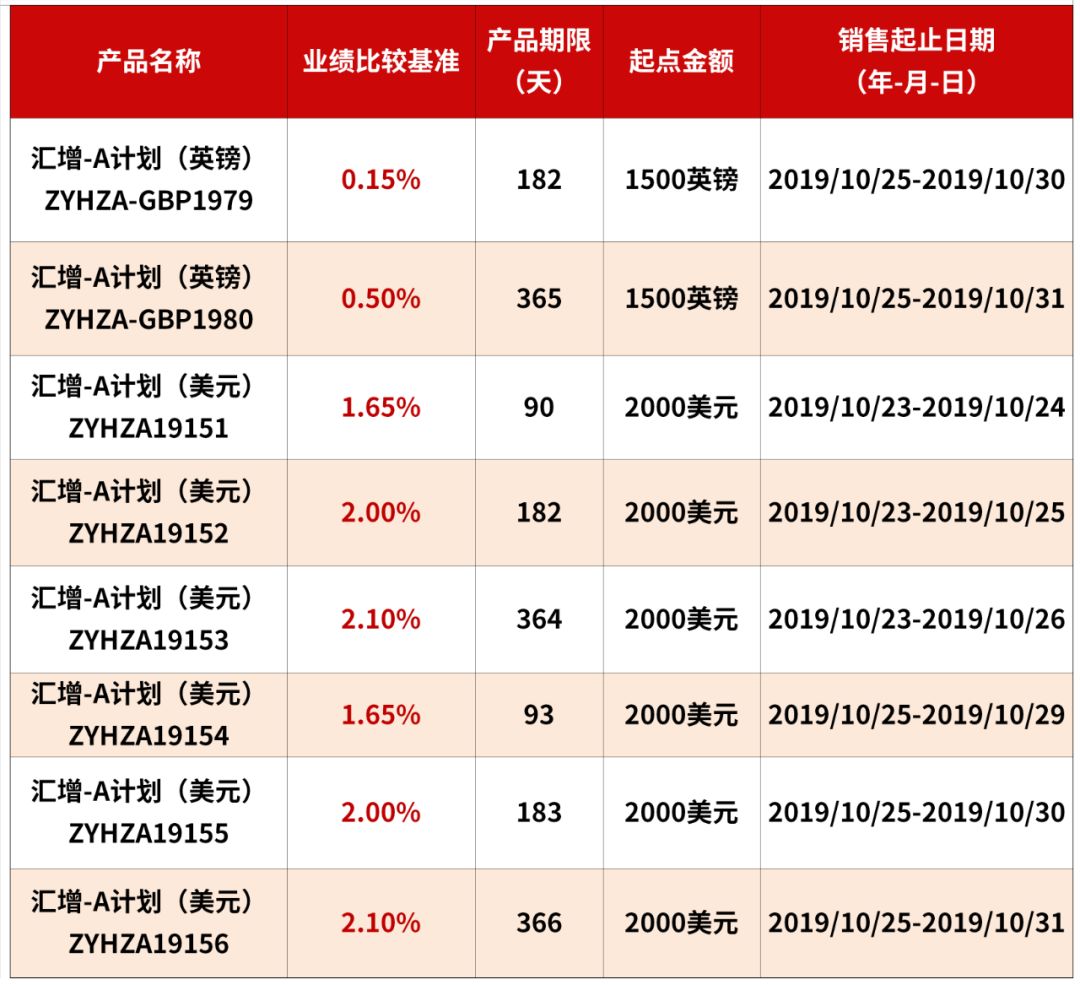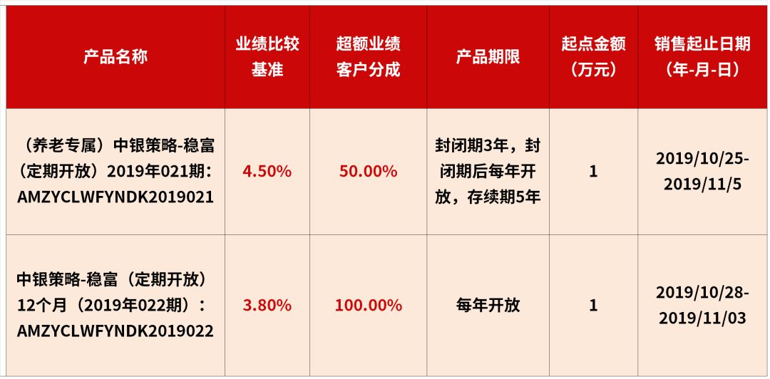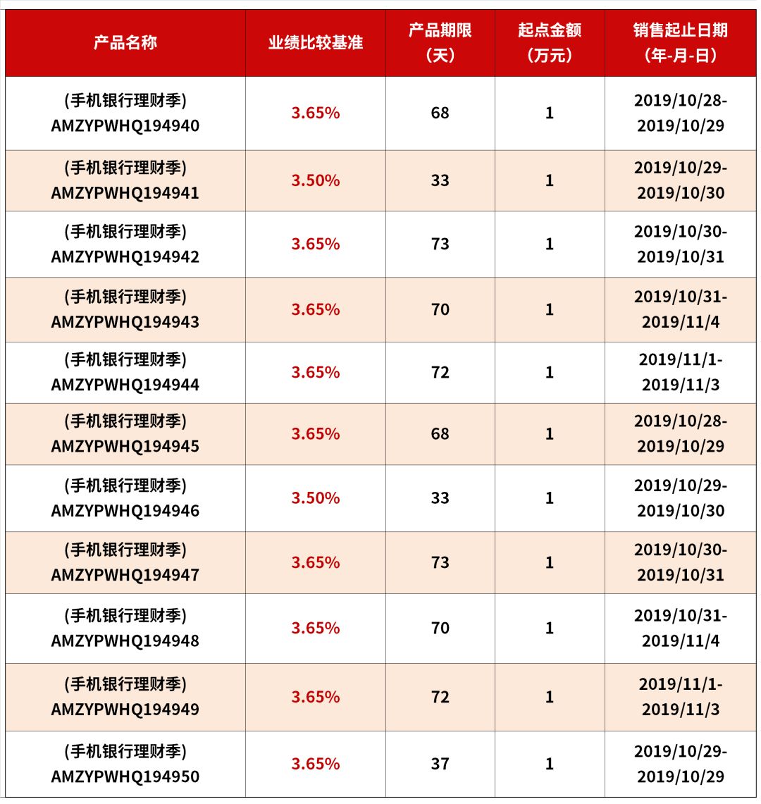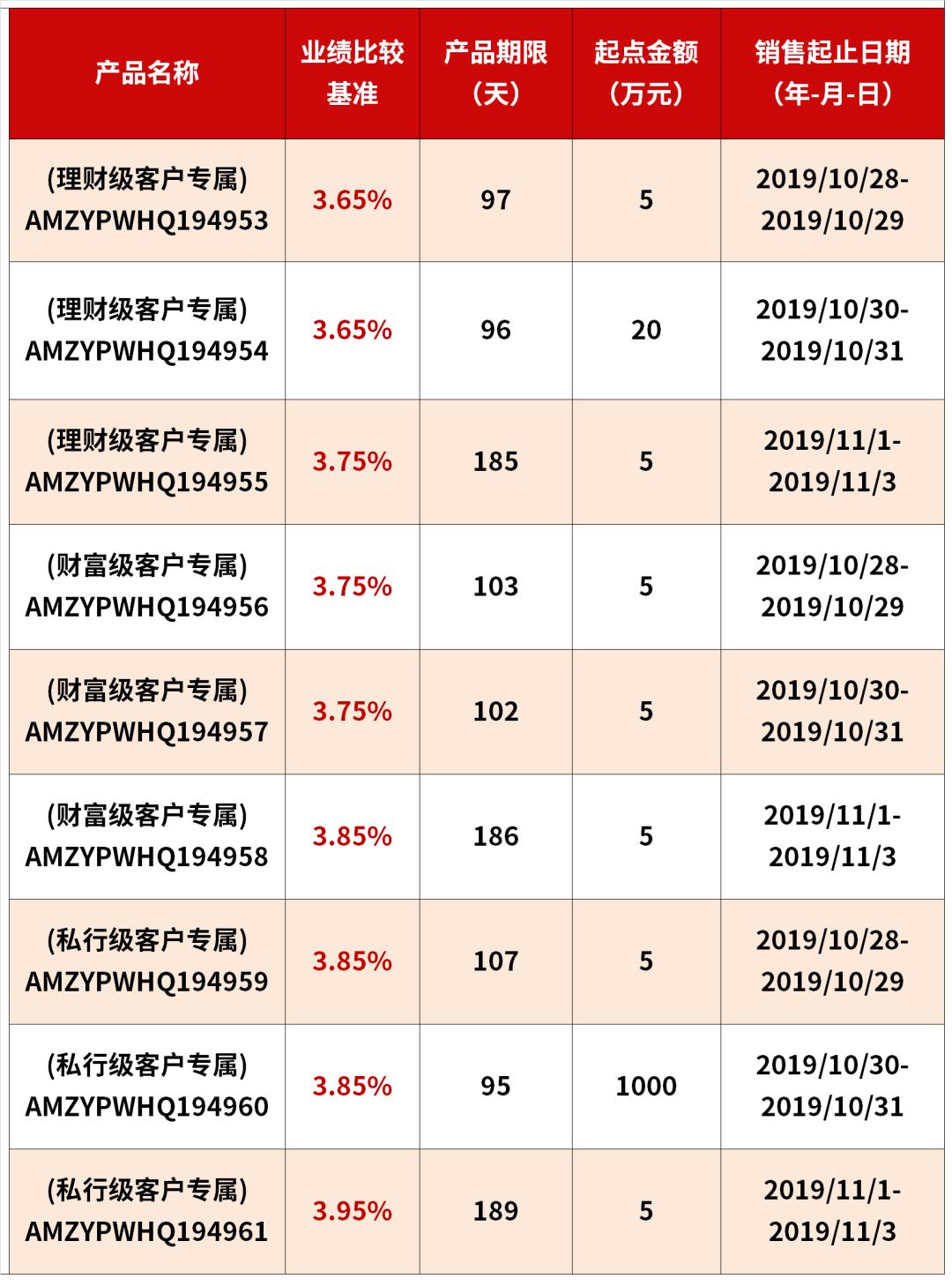 本周在售个人理财重点产品推荐(10月27日-11月2日)