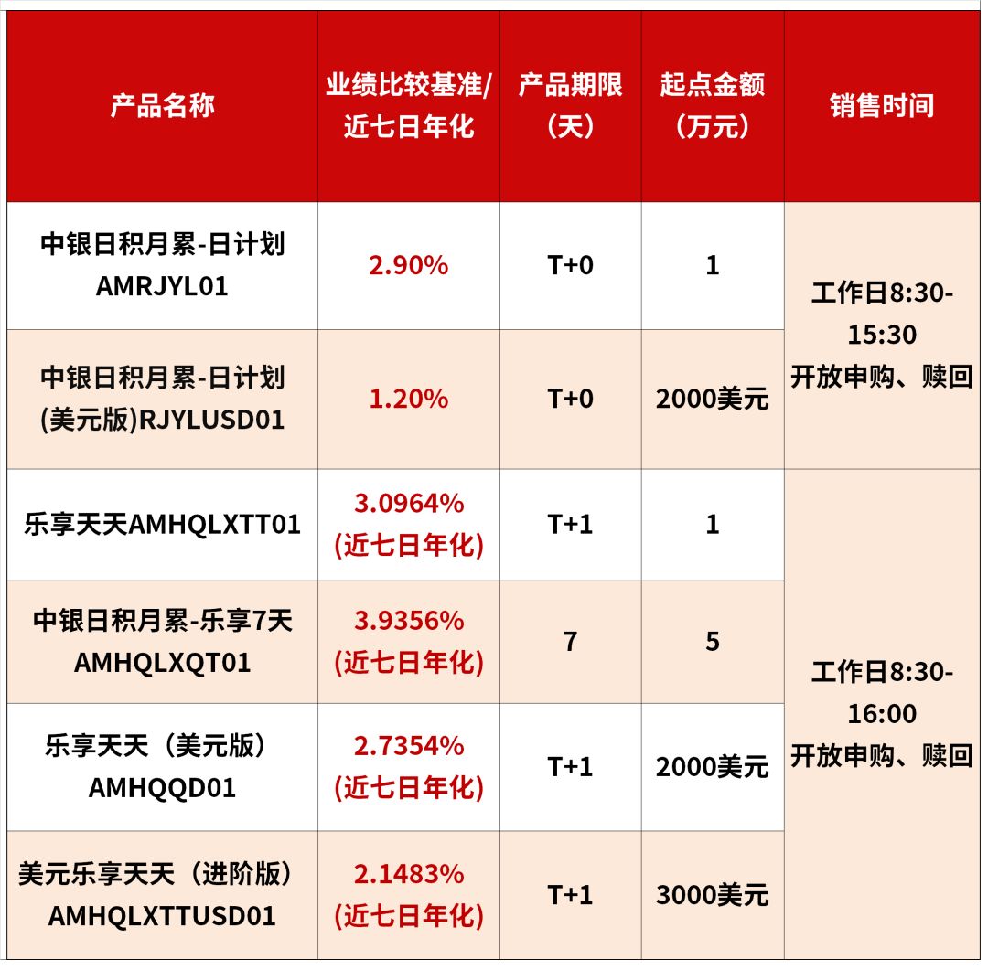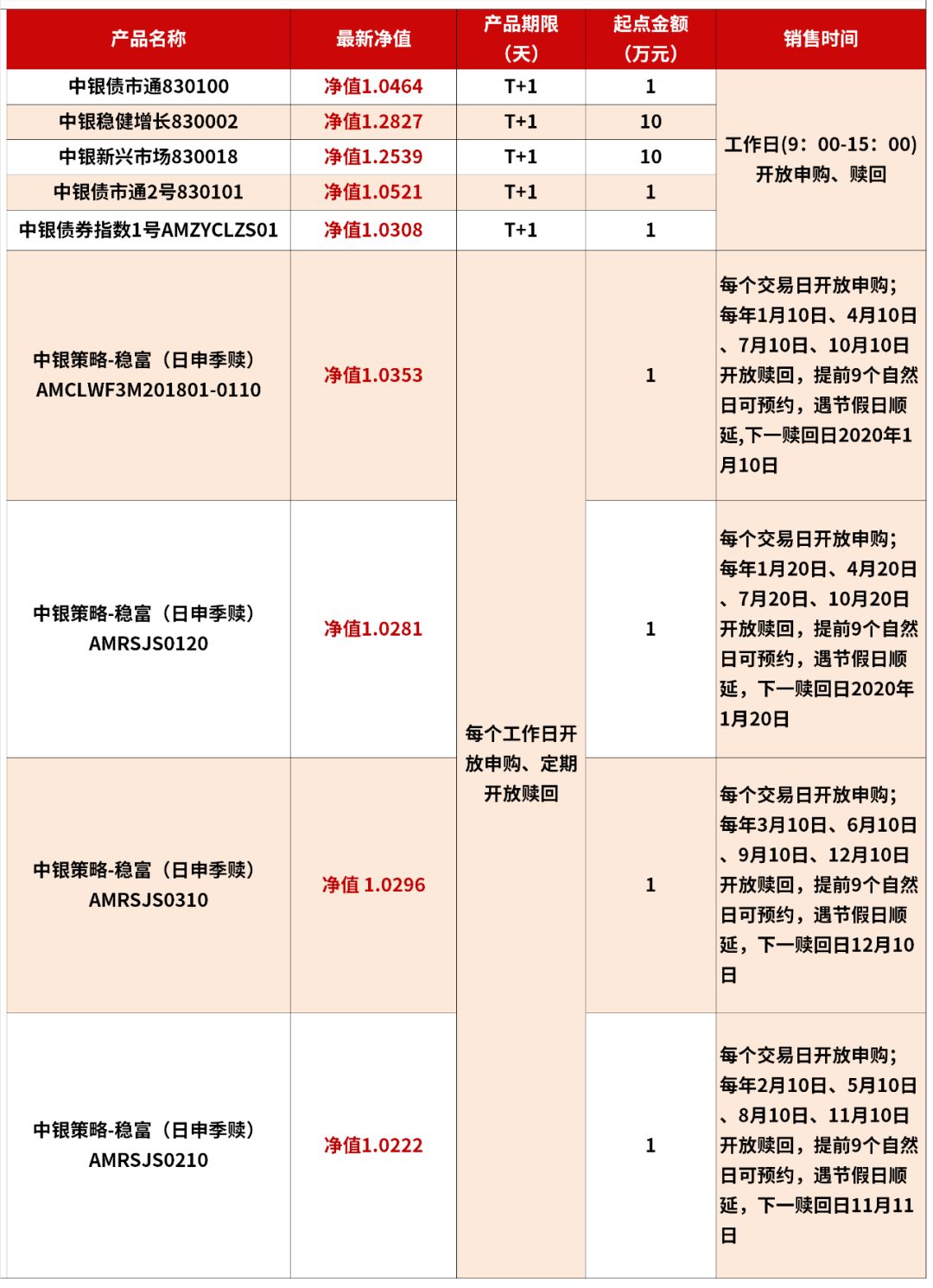 产品每日或每周公布产品业绩,请登录中国银行官方网站(www.boc.cn)查询。产品信息以产品说明书等法律文件为准。
