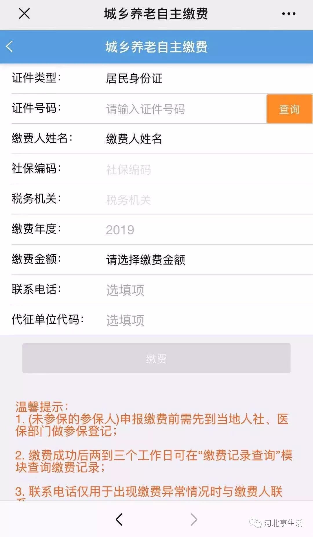 城市居民推荐使用微信缴费