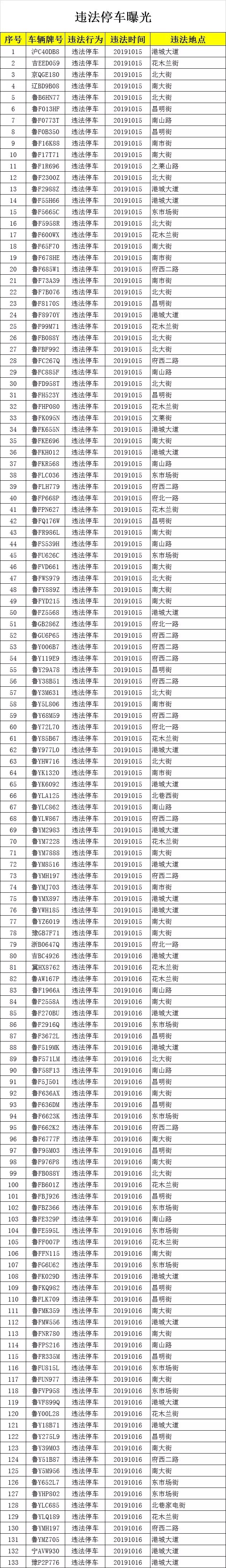 为了加强辖区道路交通秩序管理,有效规范静态道路交通环境,进一步提升文明城市水平,龙口市公安局交警大队持续采取人工现场查处和系统抓拍相结合的方式,对违法停车、占用盲道等违法行为进行查处,现将10月15日、16日查处的133起违法停车违法行为进行曝光,请违法机动车驾驶人或车主及时到交警部门接受处理。