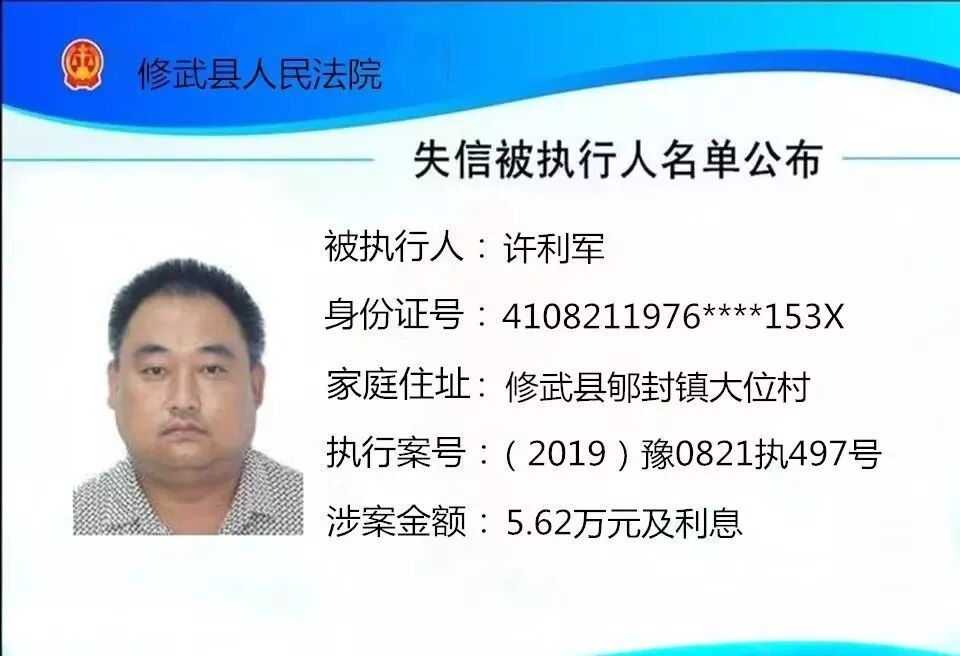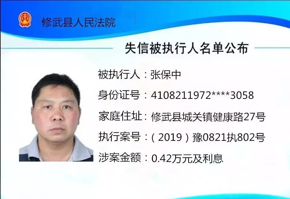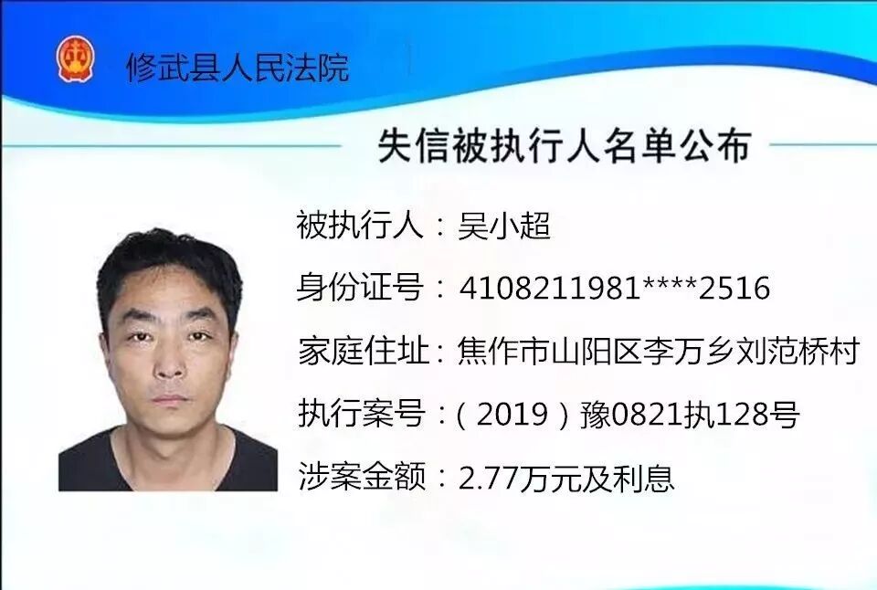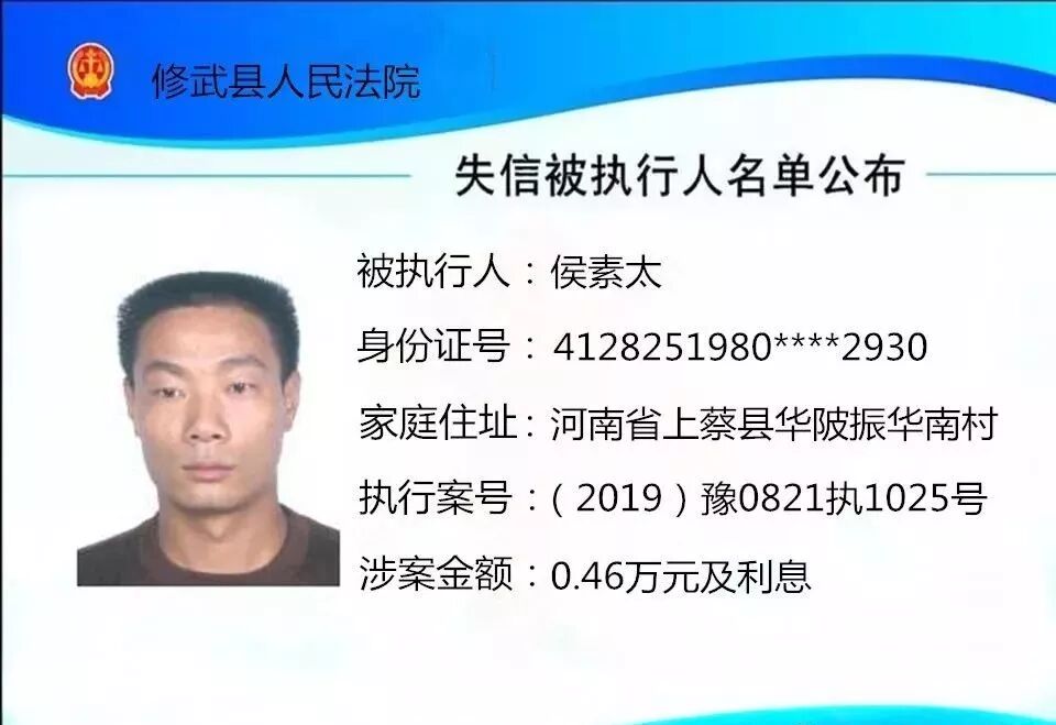 【最新曝光】河南省修武法院失信曝光台,老赖还钱吧,你逃不掉法网的