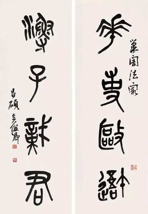 不论甲骨文还是大、小篆,都是各自独立,不相牵连,属于静态书体。其中小篆字形偏长,石鼓文偏方,但字形均大小整齐均匀。甲骨及钟鼎等字与字则有大小、长扁、欹正的差异。其书联可分别参照楷、隶章法为之。