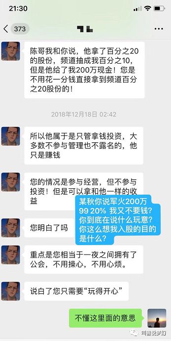 这次看到晚秋删帖,陈无敌不忘奚落他两句,并且针对晚秋曾经说的收购直播工会一事发表了很多聊天记录:我们可以看到,当初为了拉拢陈无敌入股,晚秋一口一个陈哥,一口一个您,真的和现在大相径庭。