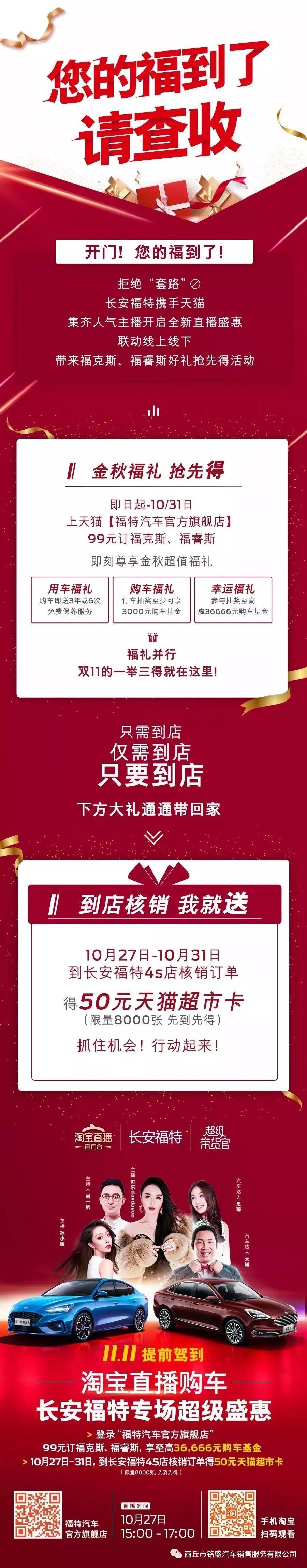 【商丘铭盛】淘宝直播购车 长安福特专场超级盛会