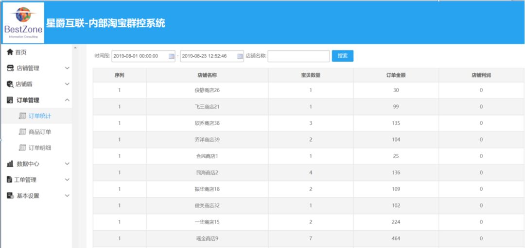 店铺辅助系统,辅助你的订单管理、商品订单和所有店铺的已售明细;