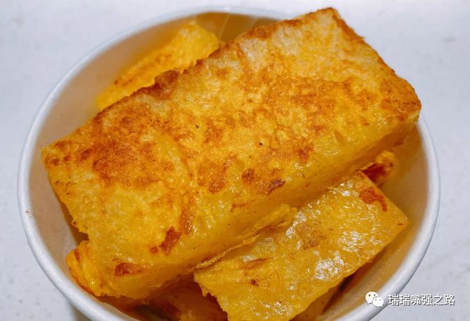 黄金糕一定要买新出炉的趁热吃,热乎的黄金糕比冷掉的优秀太多,吃起来柔软细腻,淋上微甜微咸的奶黄酱,可以充当一份美妙的饭后甜点。