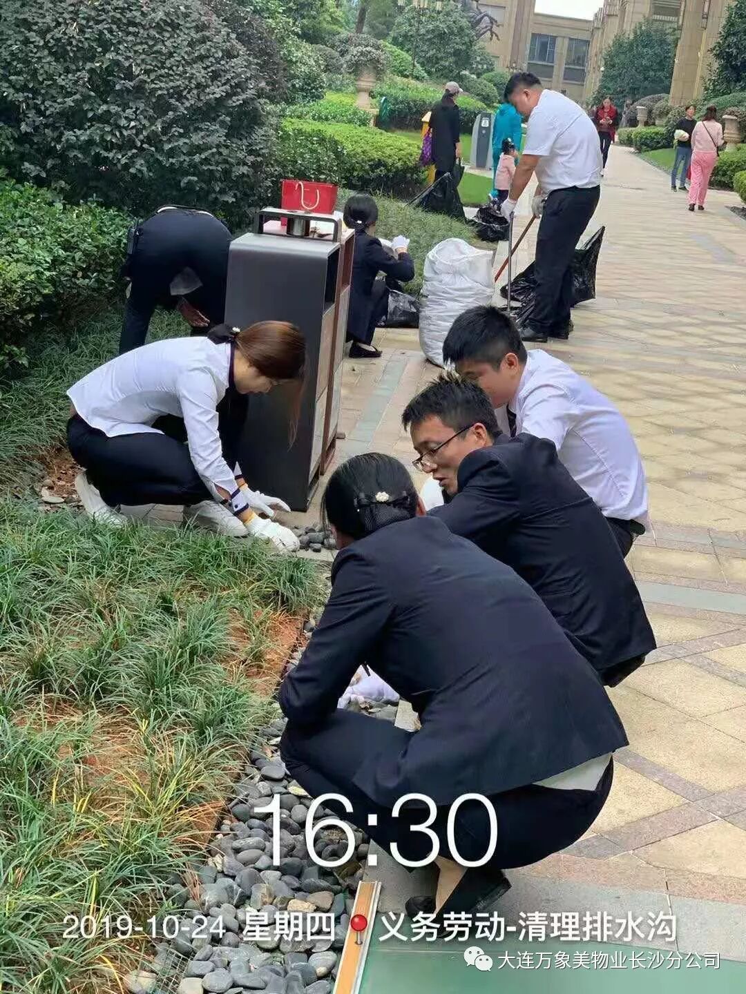 每周一次的义务劳动时间,物业全体员工对园区排水沟进行了全面清理