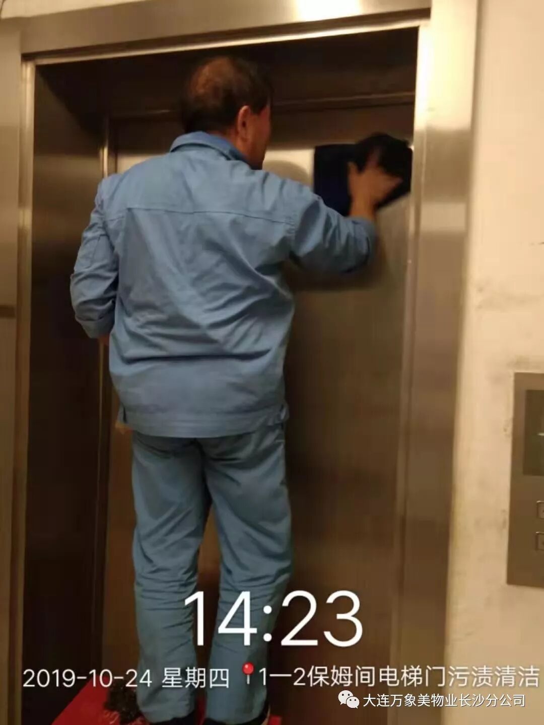 电梯门死角清洁并上油、清扫快递房蜘蛛网
