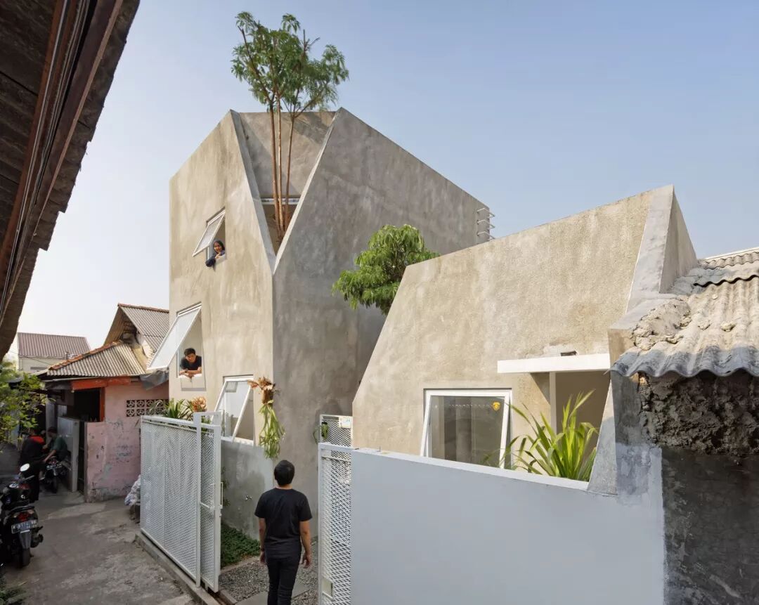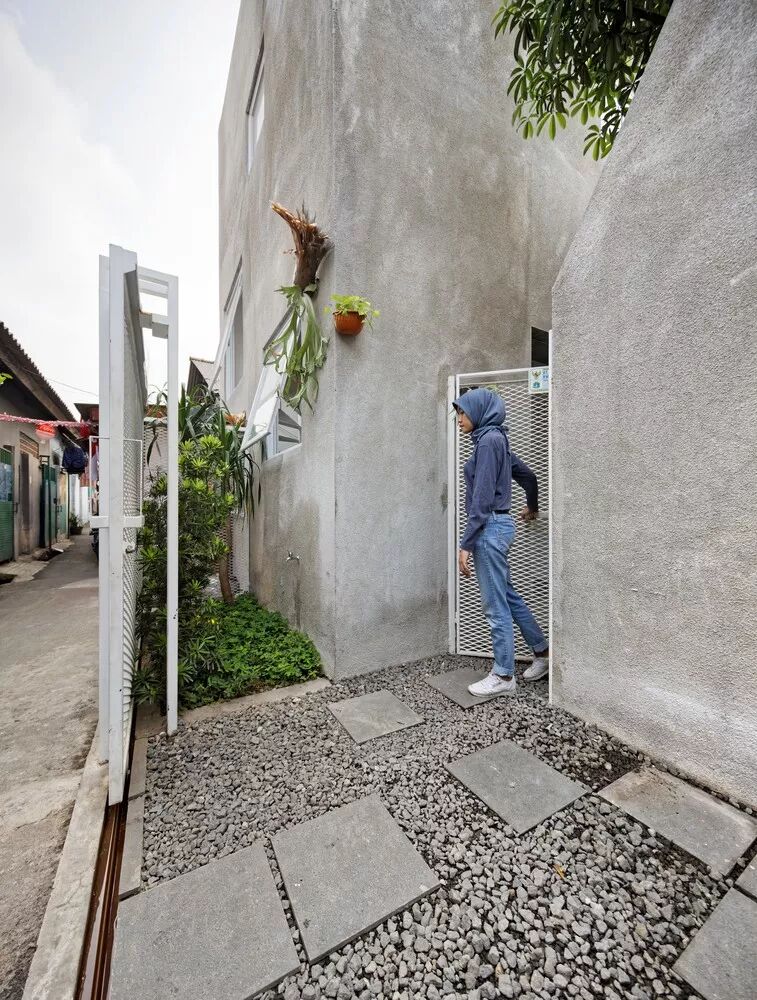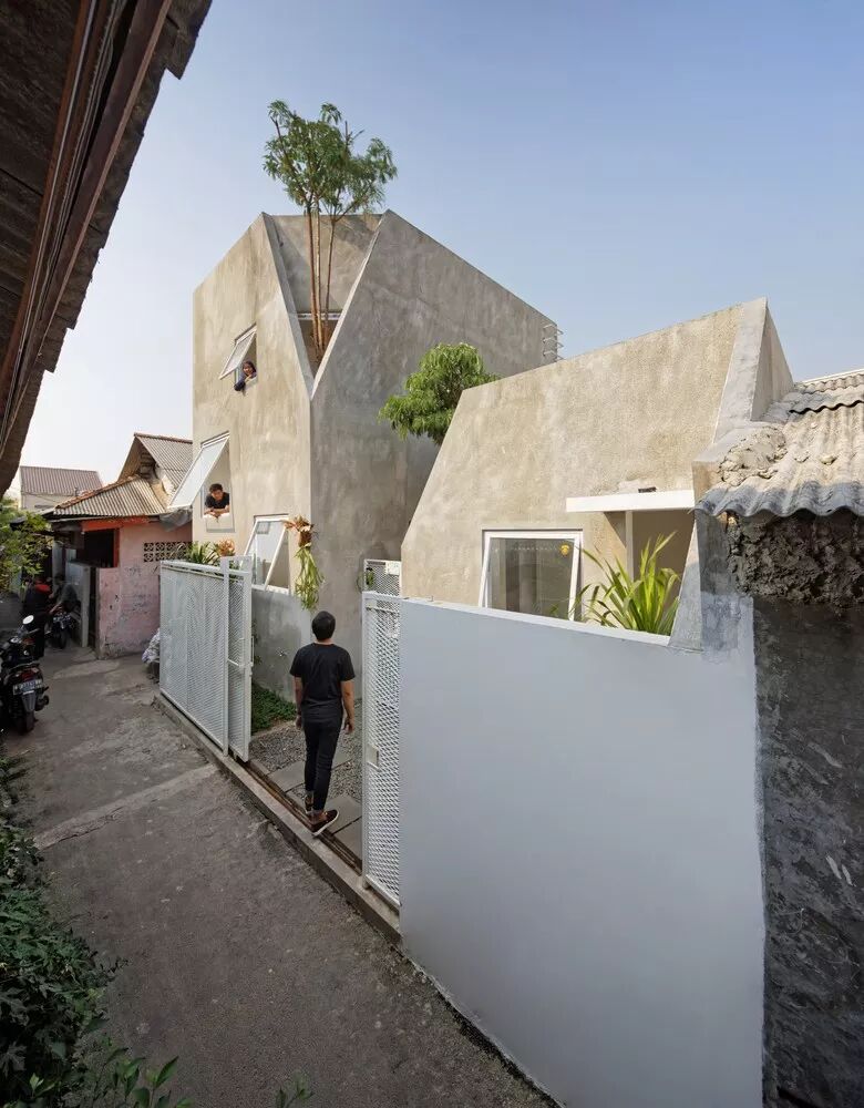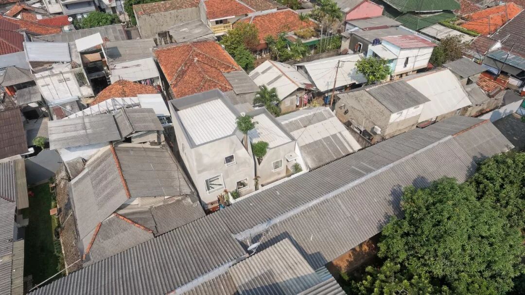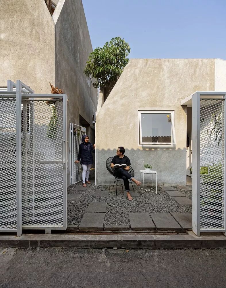 这栋70㎡的住宅位于Cipulir——一个人口稠密的区域。房前有一条1.5米宽的小巷,可供摩托车通行。基地上建造了两栋房屋,其中一栋供四口之家使用,另一栋则供一位残疾妇女使用。屋主是兄妹,因此有了“双生宅”的概念。